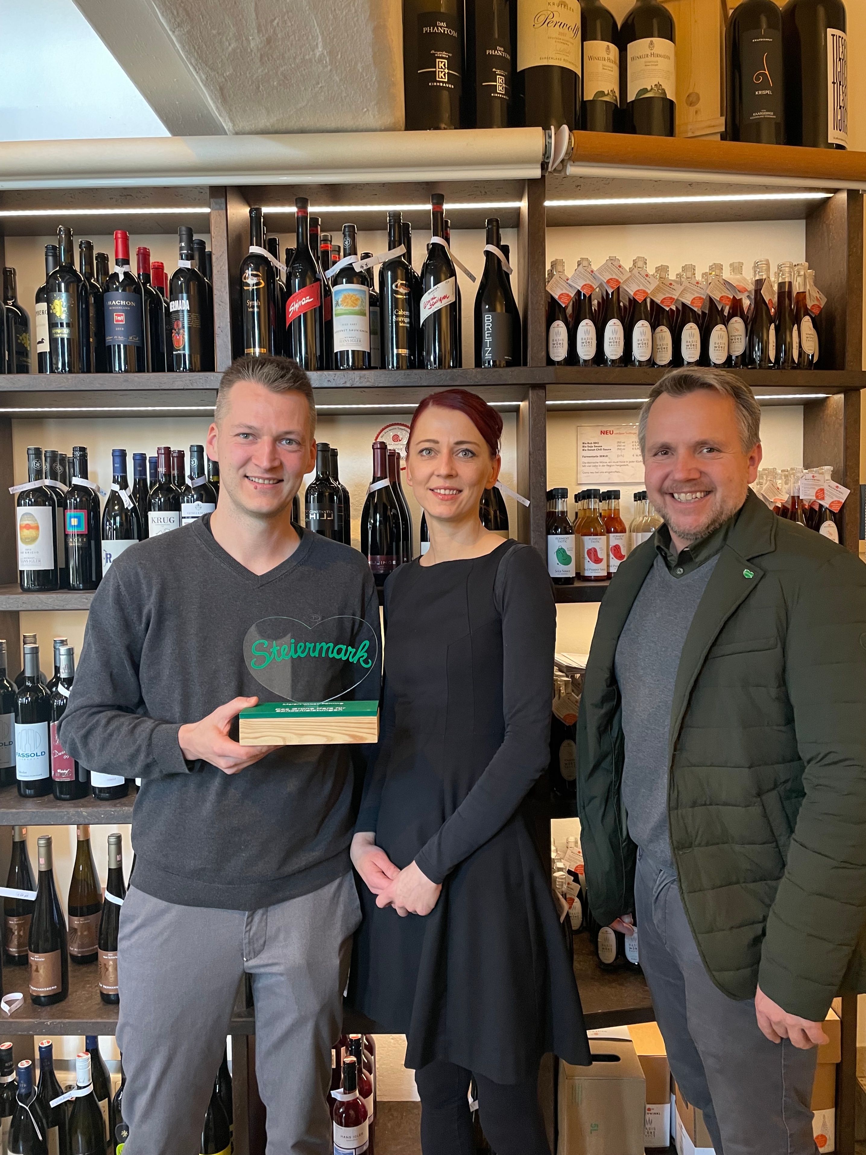 Michael Feiertag (Geschäftsführer STG) gratulierte Walter Triebl (Lilli Fehring) und Peter Troißinger (Malerwinkl) herzlich zu dieser großartigen Auszeichnung und überreichte ihnen einen besonderes Steiermark-Herz.